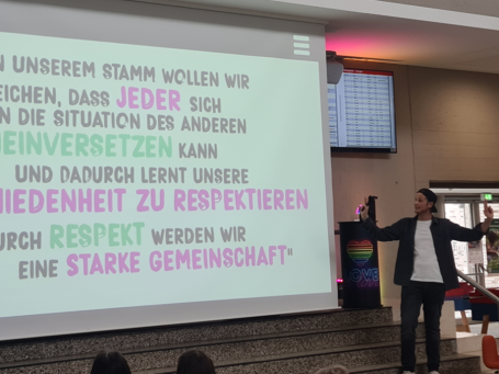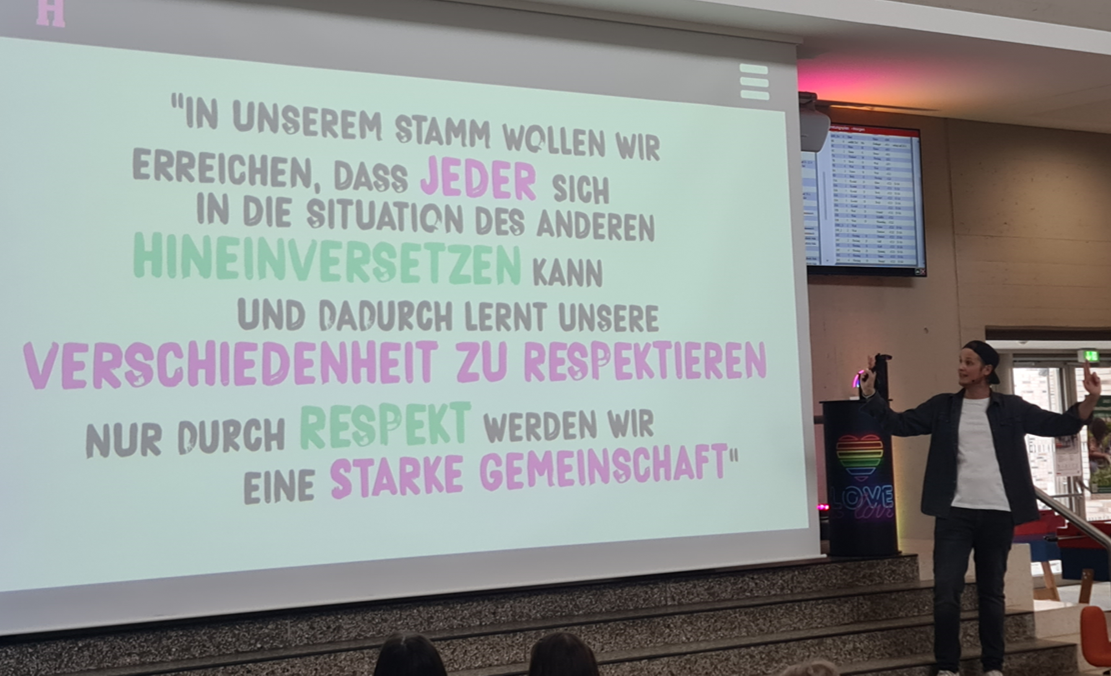 Auch in einer Nachbesprechung durch die Lehrkräfte konnten die Schüler*innen so manch unbedachte Bemerkung bzw. Beleidung überdenken, diskutieren, mögliche Vorurteile abbauen und sich das Anliegen der Show noch einmal in Erinnerung rufen: „Nur durch Respekt werden wir eine starkeGemeinschaft.“