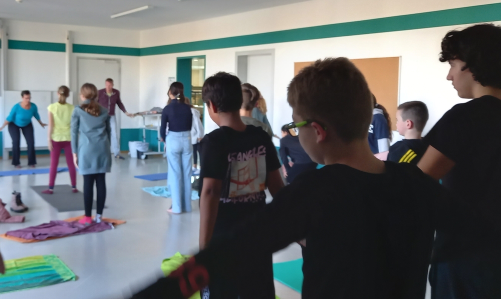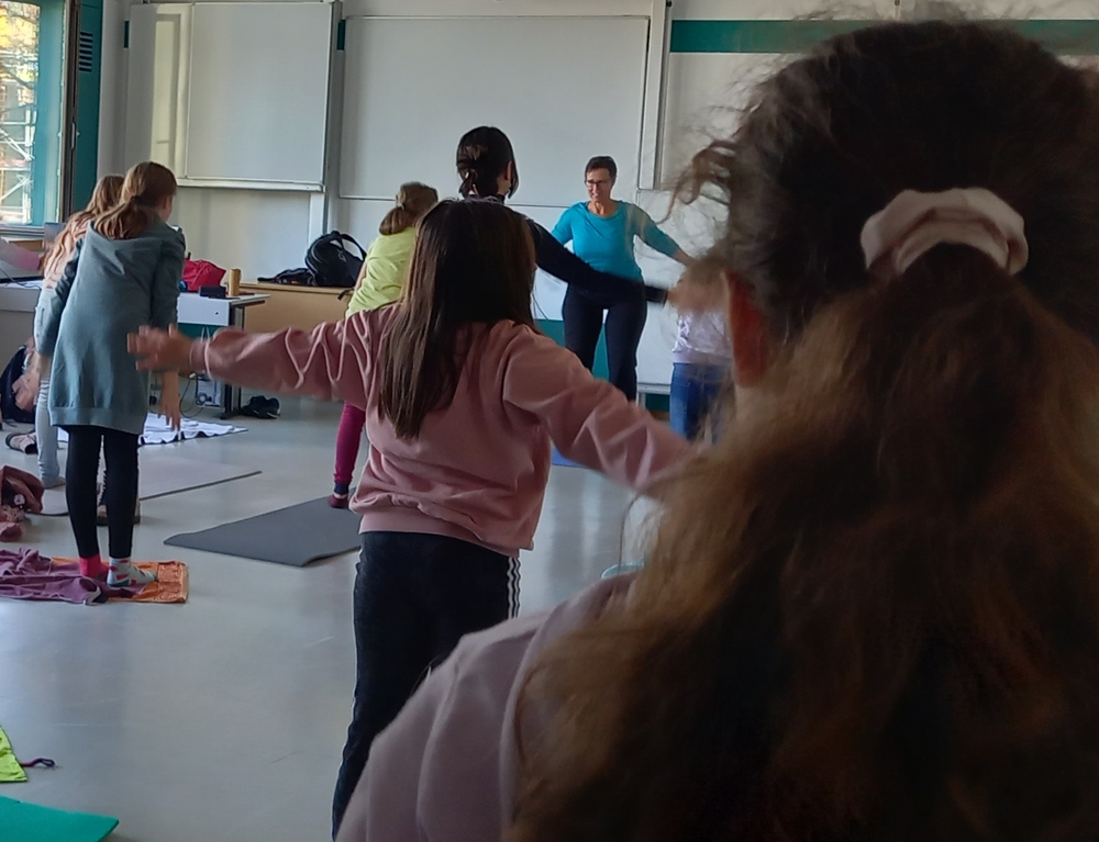 Beim Erstellen von Bienenwachs-kerzen und einem Imkervortrag an unserer Schule lernten die Schülerinnen und Schüler die Bedeutung der Bienen kennen und konnten dabei auch gleich ein Glas Honig erwerben. Ihre Fitness legten die Heranwach-senden dann mit einem einstün-digen „Pilates flow“- Training an den Tag.