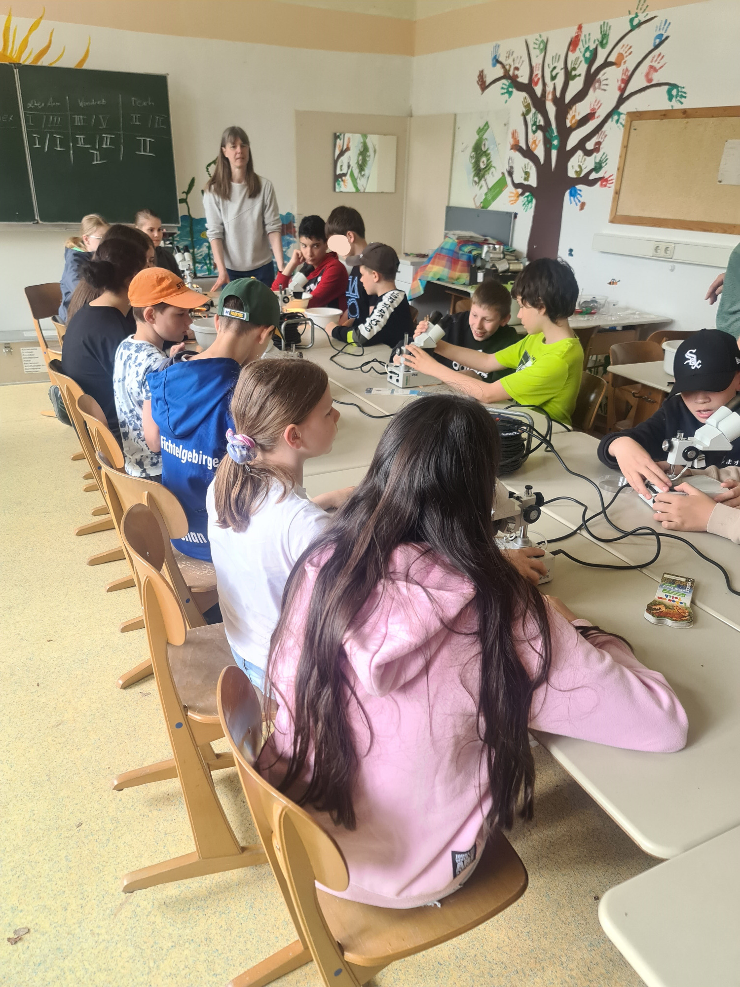 An der Fichtelgebirgsrealschule gibt es auch die Möglichkeit eine offene Ganztagesschule zu besuchen – diese Informationen waren auch für einige Eltern sehr wichtig. Der Fachbereich Biologie stellte die Arbeit mit den Mikroskopen vor und die Kinder konnten diese auch gleich ausprobieren. Die Führungen endeten an einem Marktplatz, bei dem der Elternbeirat und die SMV der Schule für das leibliche Wohl sorgte und die Schülerinnen und Schüler sowie deren Eltern sich an verschiedenen Ständen über die Fächer und Aktionen der Schule informieren konnten. Auch der alternative Weg zum Abitur über Realschule und FOS wurde vorgestellt. Am Ende dieses Tages waren die ausgegeben Turnbeutel gut gefüllt, da an vielen Stationen kleine Aufmerksamkeiten für die Viertklässlerinnen und Viertklässler vorbereitet waren. Man merkte im ganzen Haus, dass sich die Schule auf ihre neuen Schülerinnen und Schüler freut und in der gesamten Schulfamilie ein positives Schulklima vorherrscht.