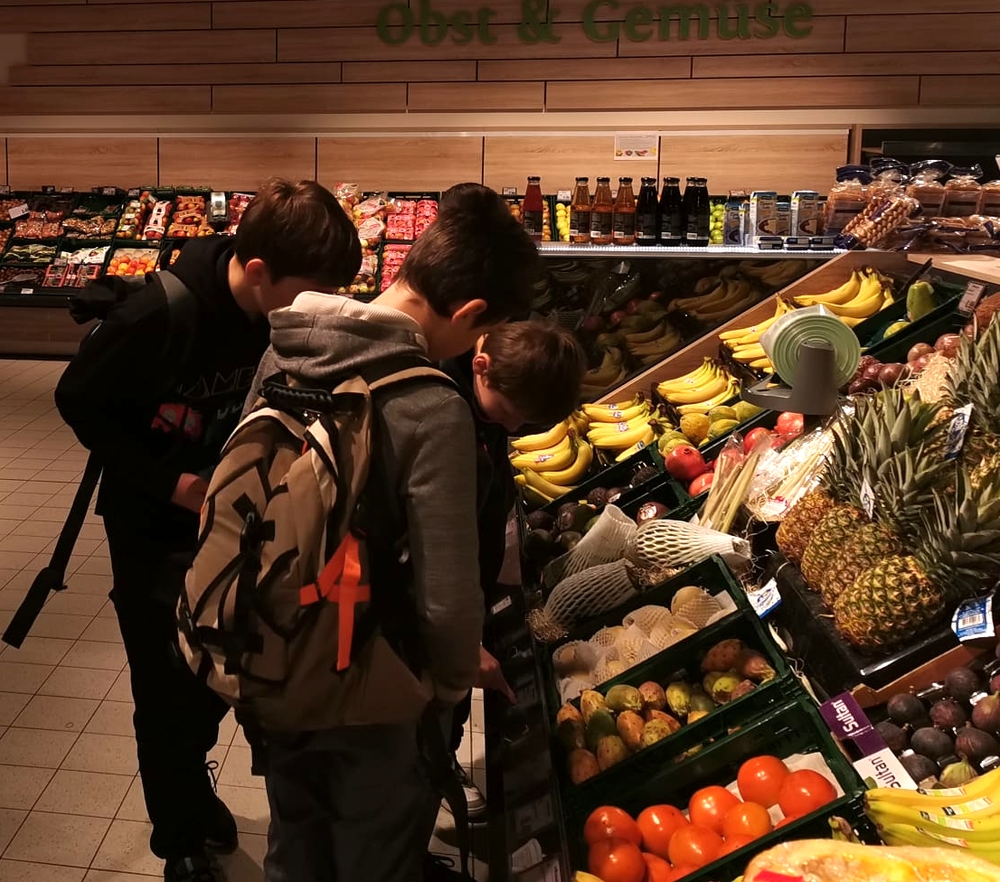 Beim Einkaufstraining erarbei-teten die Sechstklässler in Grup-pen einzelne Bereiche der Le-bensmittelindustrie. Sie erforsch-ten die Herkunft verschiedenster Nahrungsmittel und entdeckten die Bedeutung diverser Siegel und Aufdrucke.